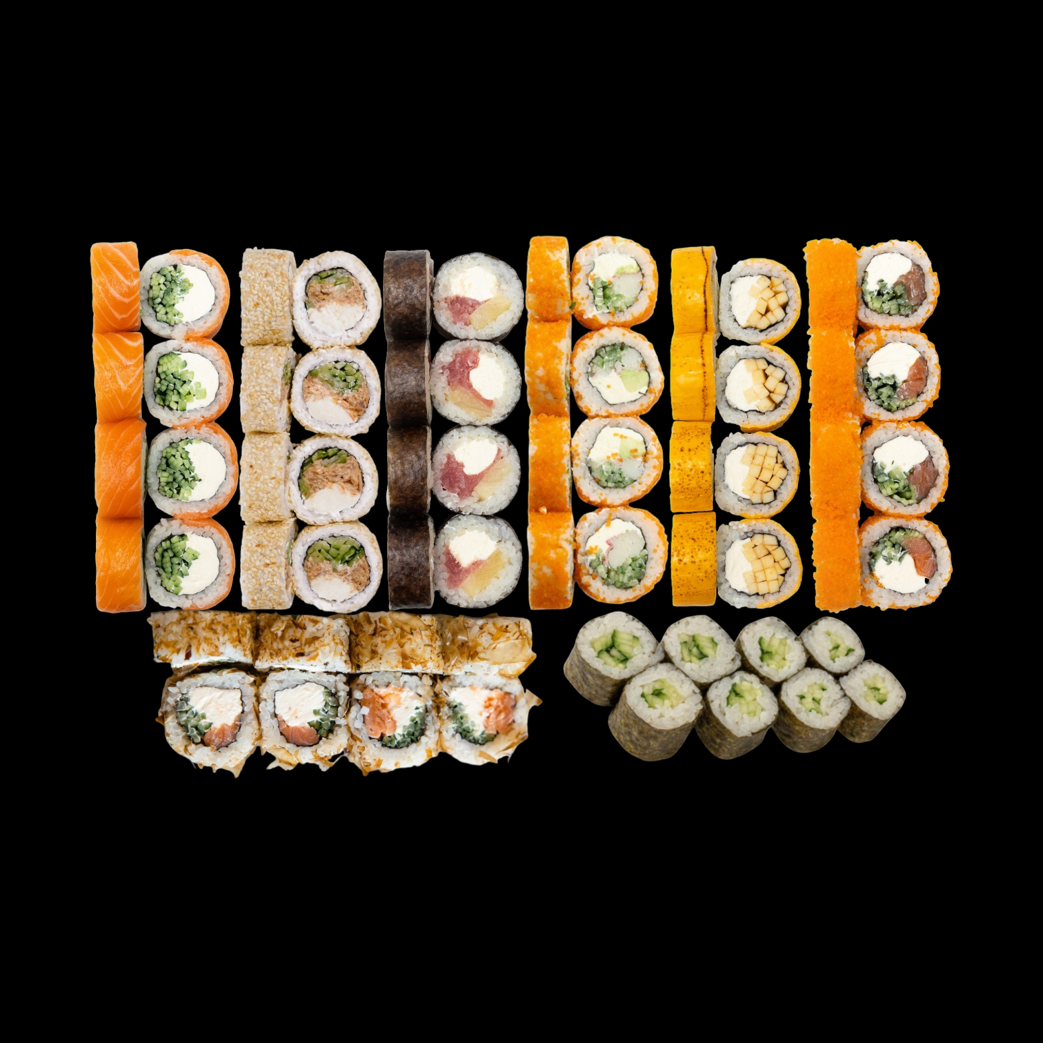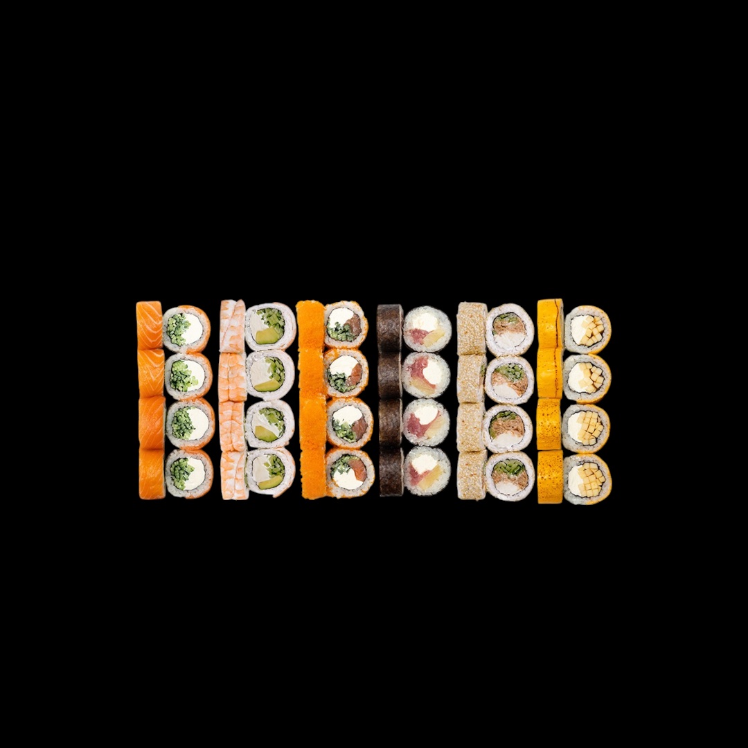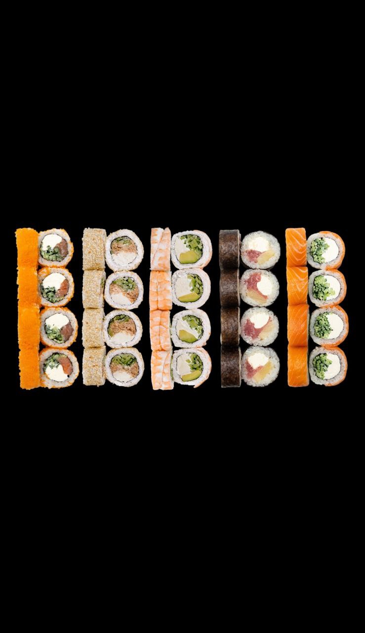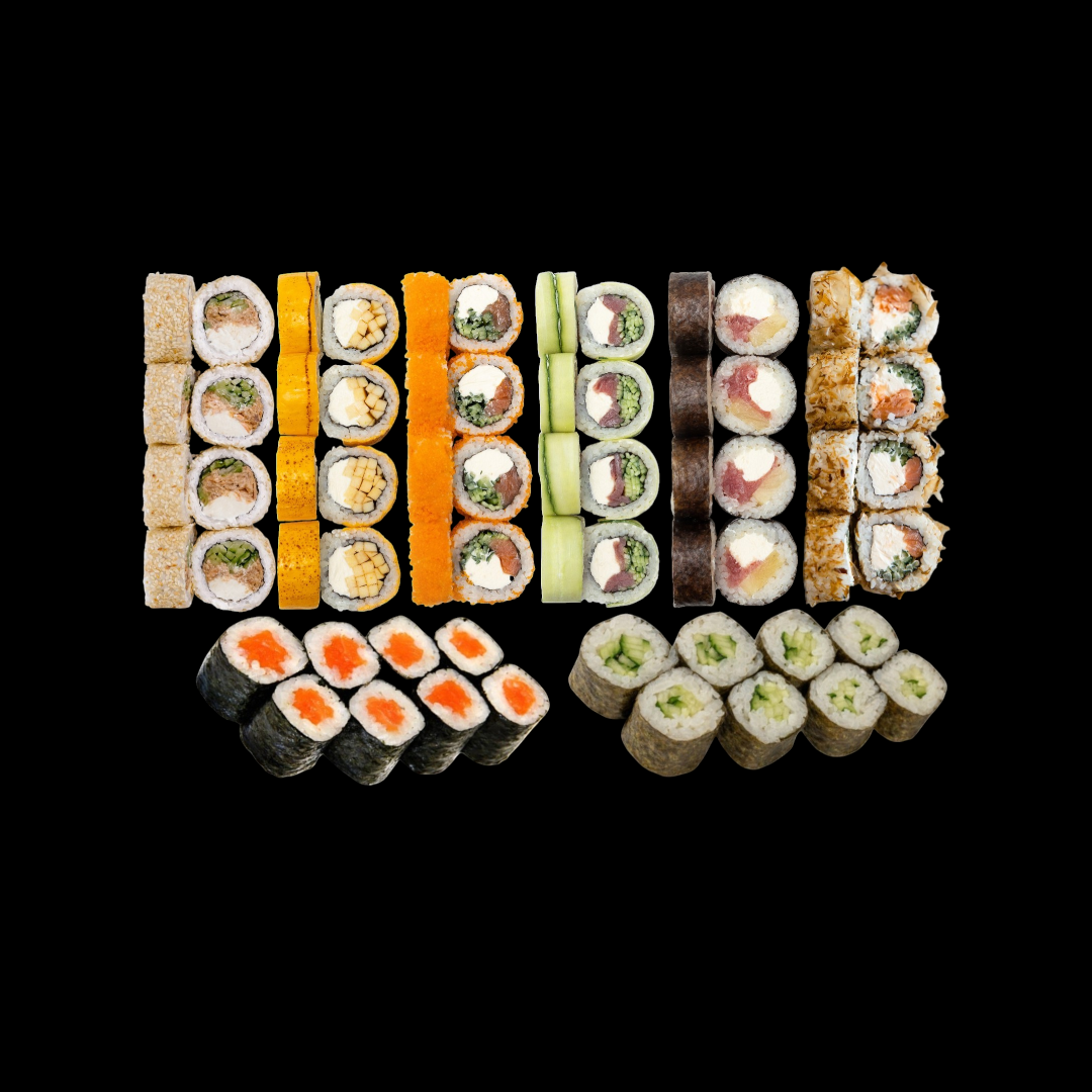 1. Філадельфія мікс креветка 2. Футомак Блек з лососем 3. Філадельфія в ікрі з лососем 4. Чедер груша5. Футомак з лососем теріякі та ананасом