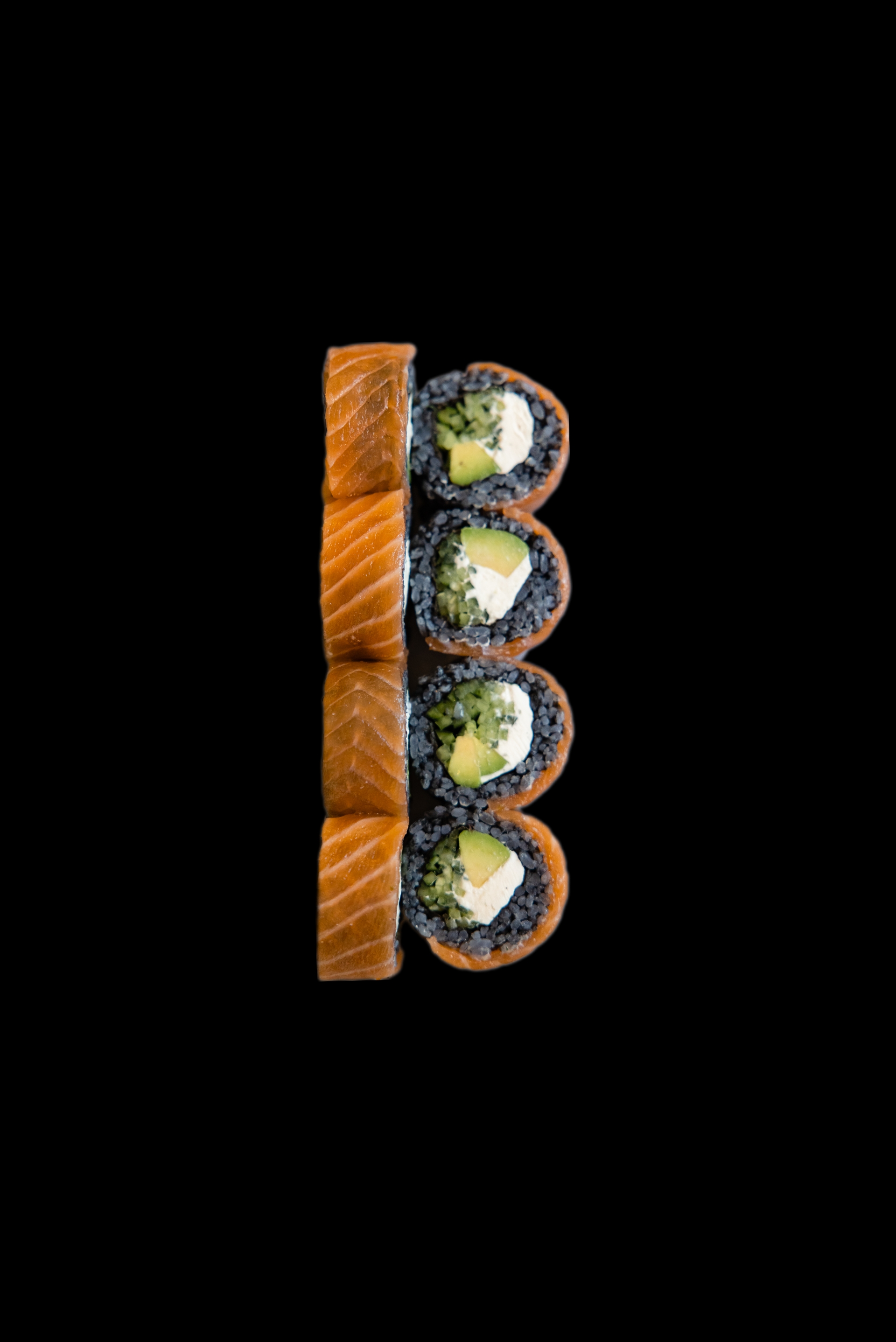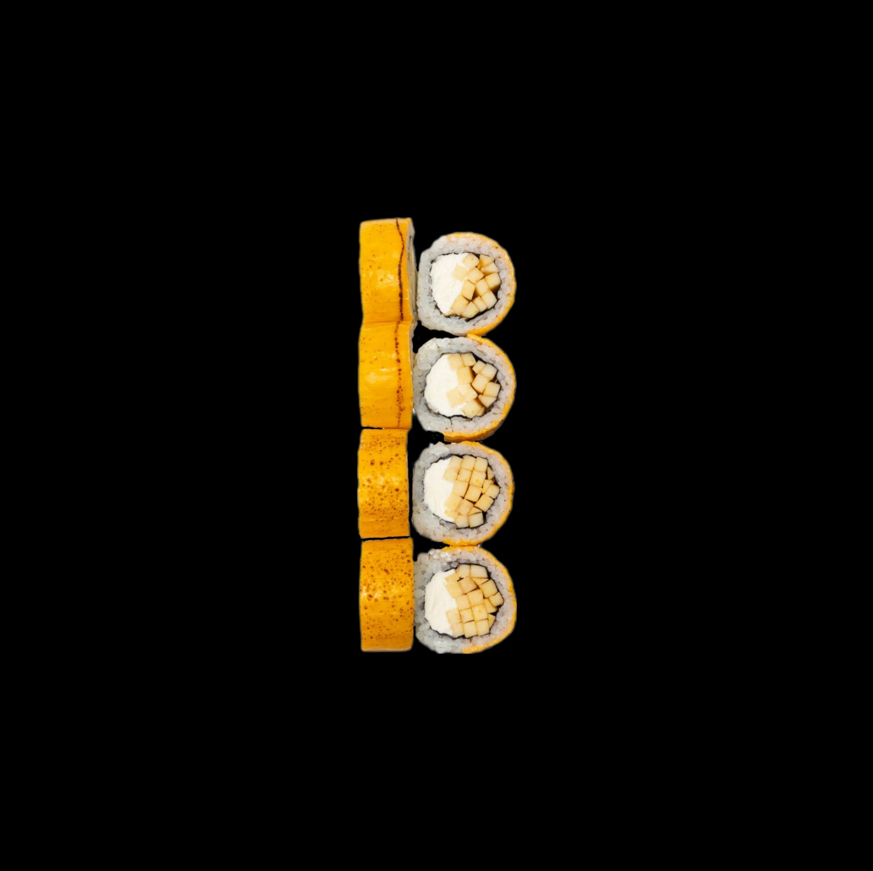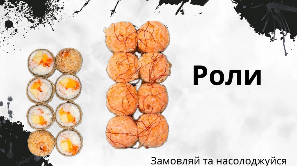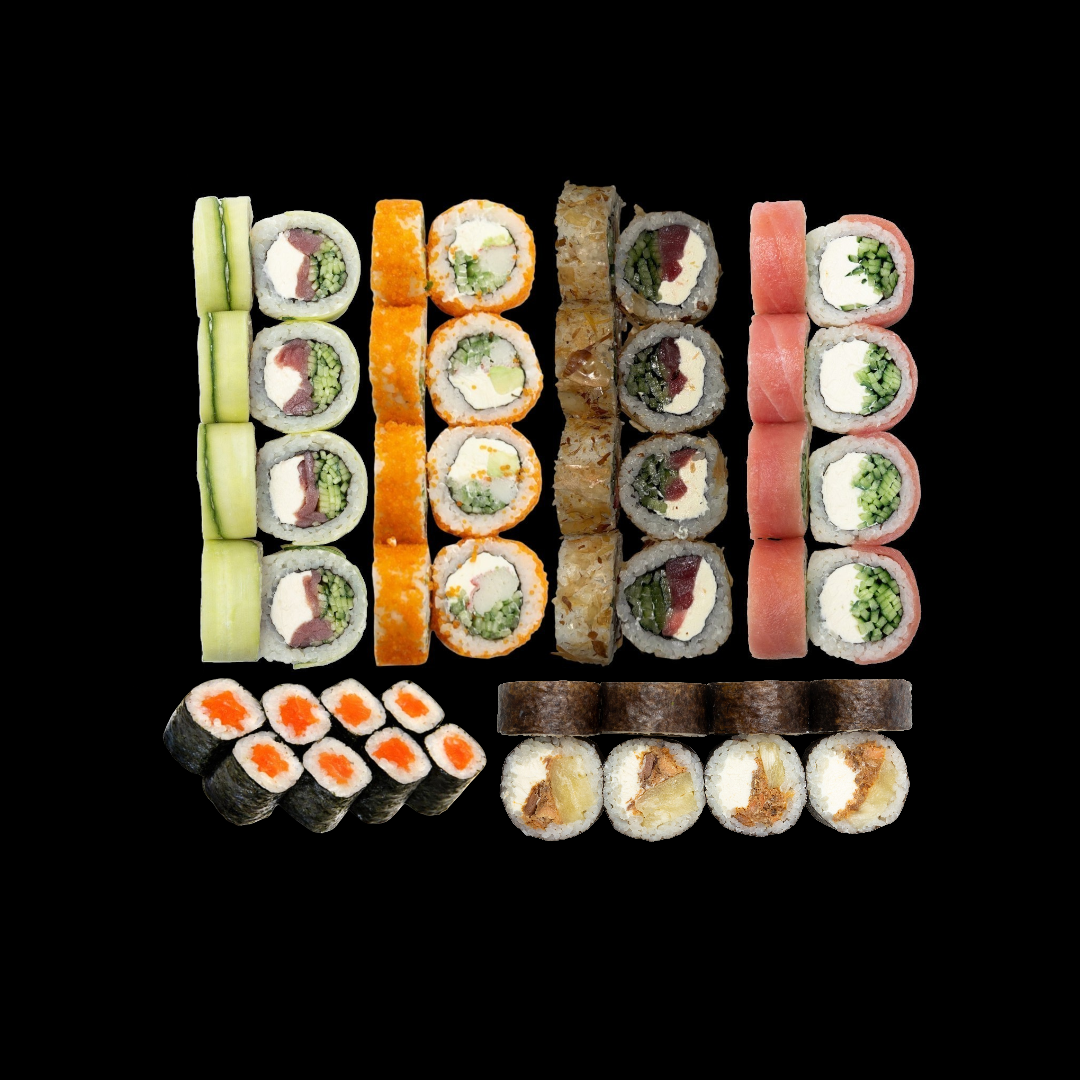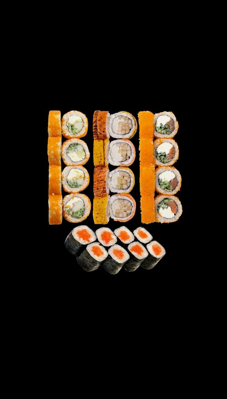 1. Філадельфія мікс креветка 2. Футомак Блек з лососем 3. Філадельфія в ікрі з лососем 4. Чедер груша5. Футомак з лососем теріякі та ананасом