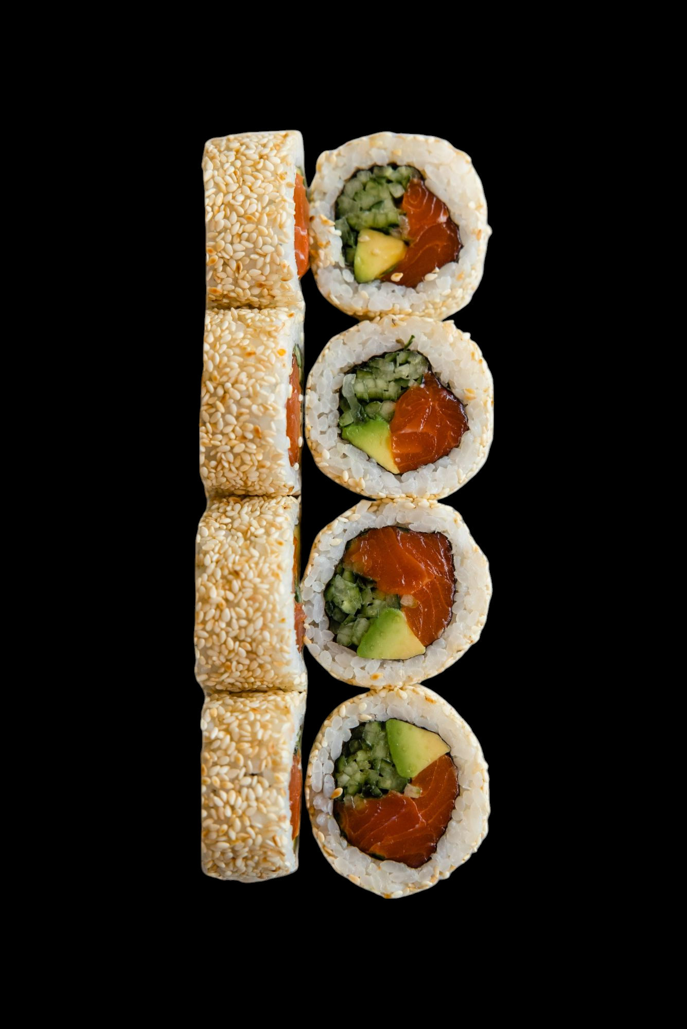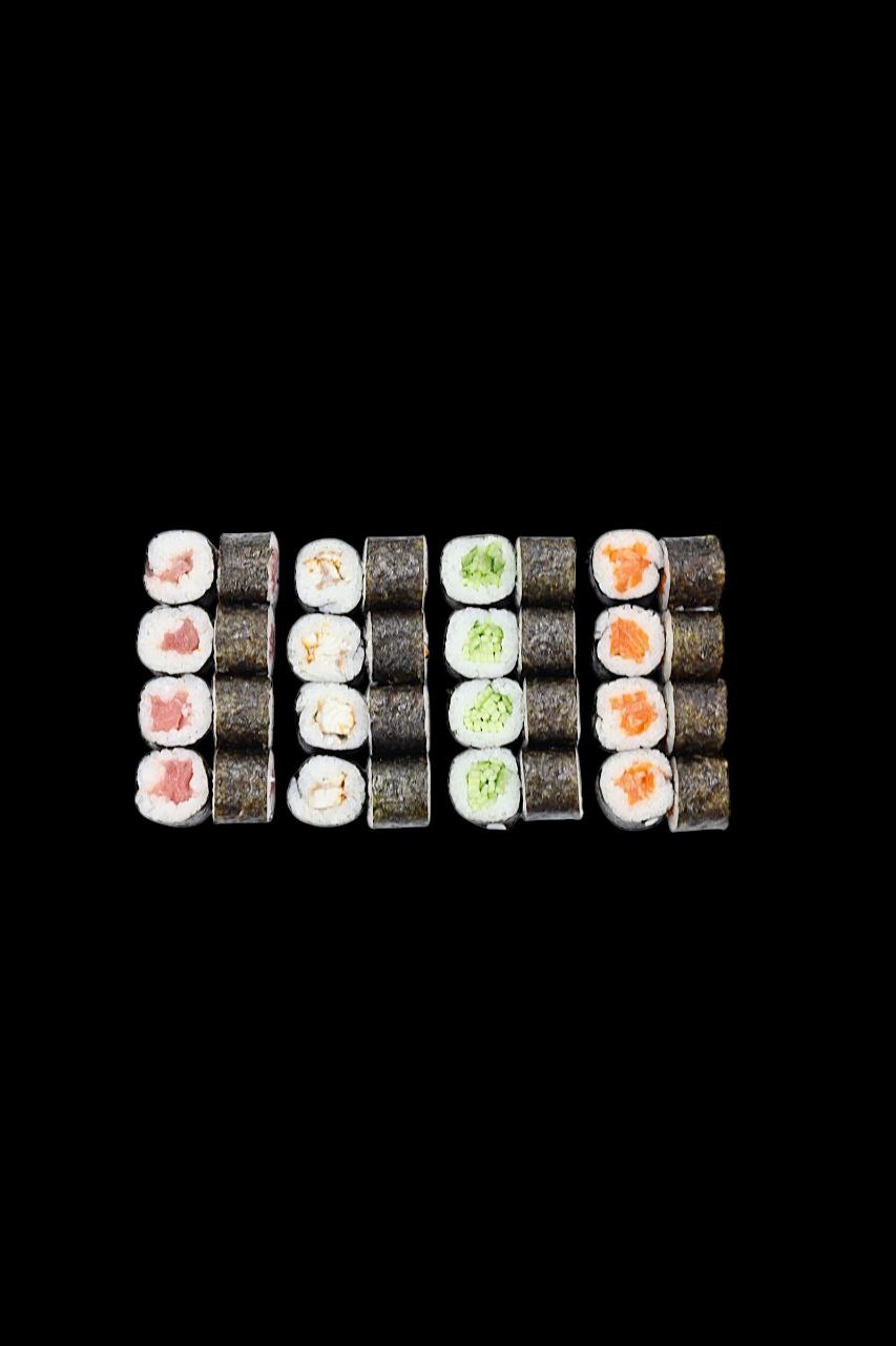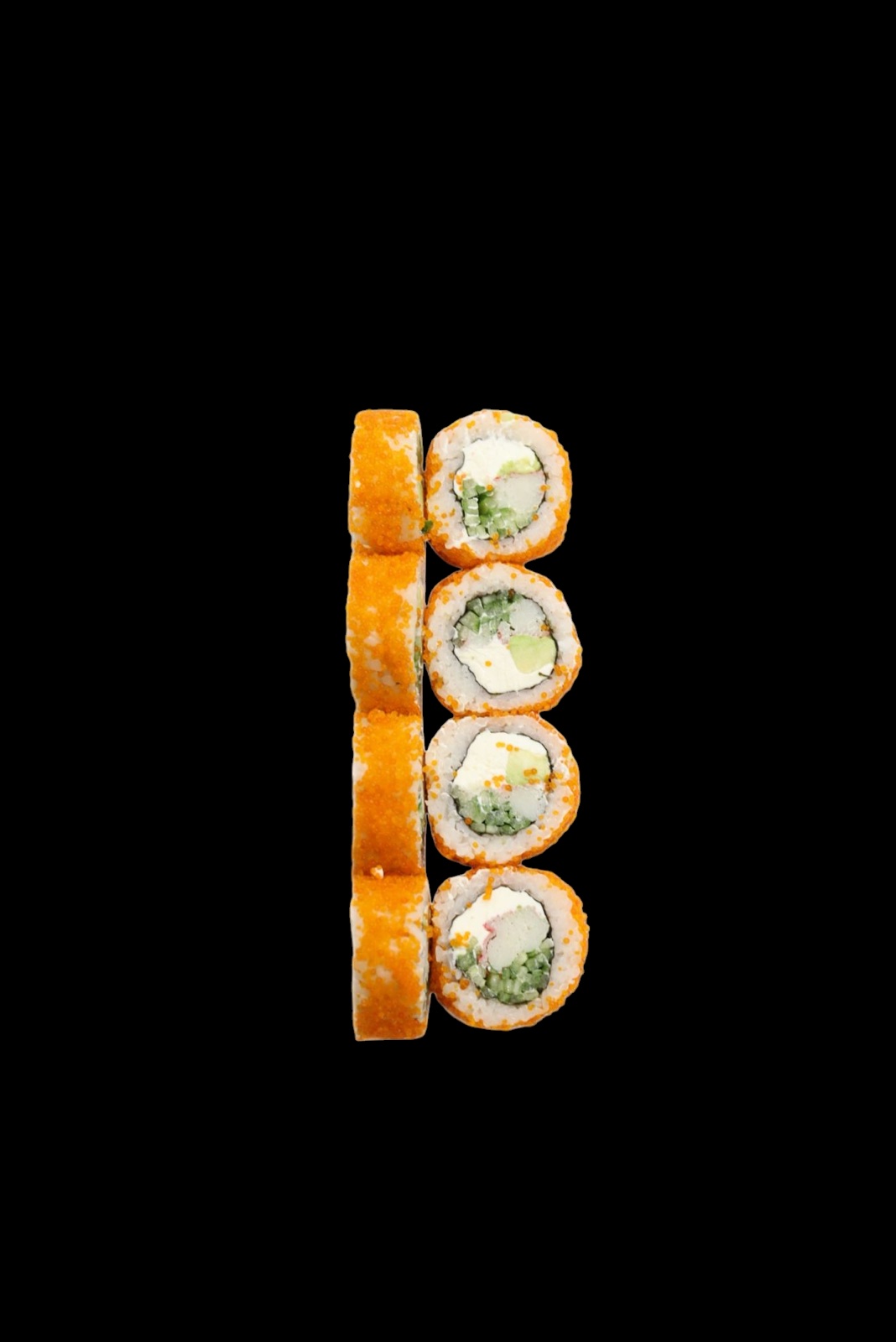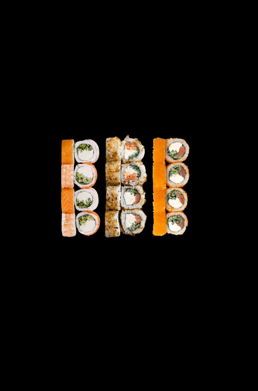 1. Філадельфія мікс креветка 2. Футомак Блек з лососем 3. Філадельфія в ікрі з лососем 4. Чедер груша5. Футомак з лососем теріякі та ананасом