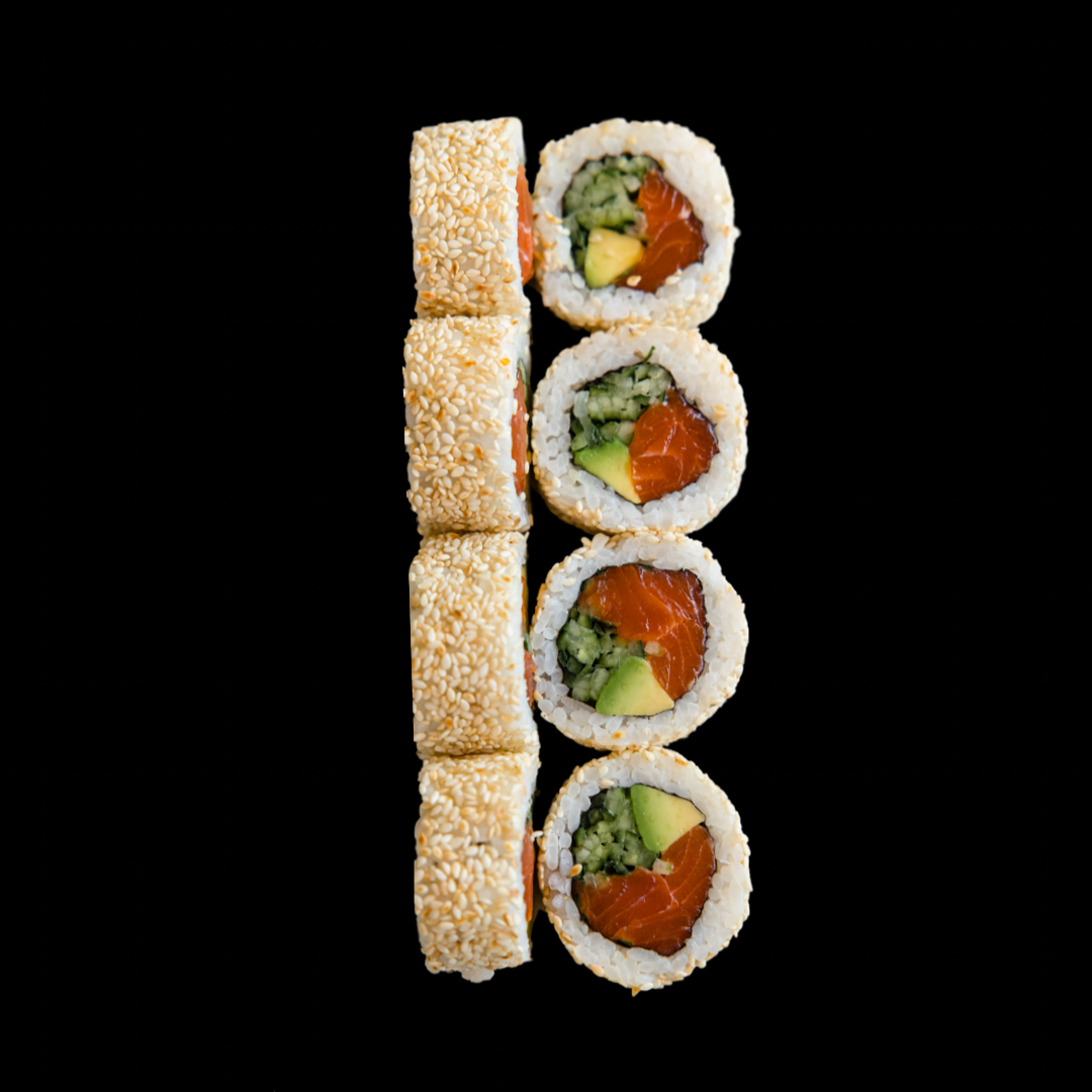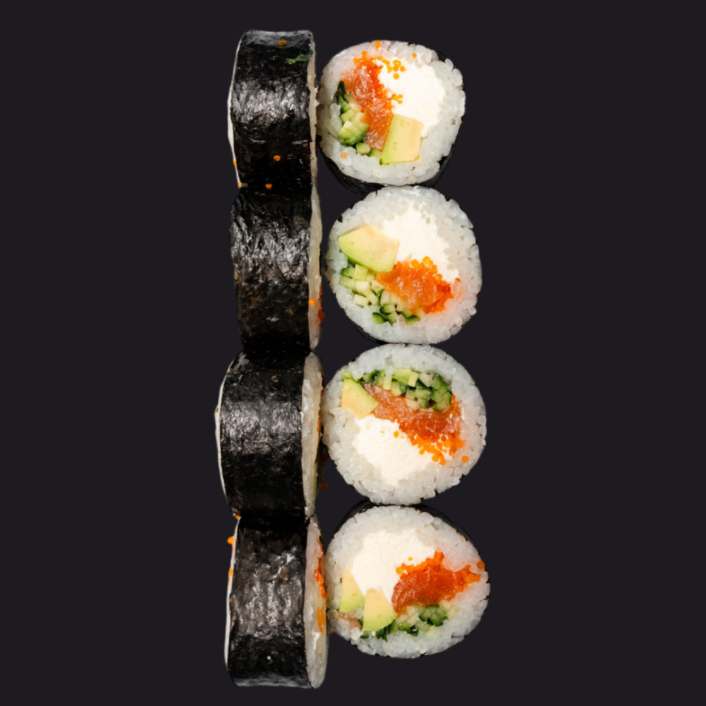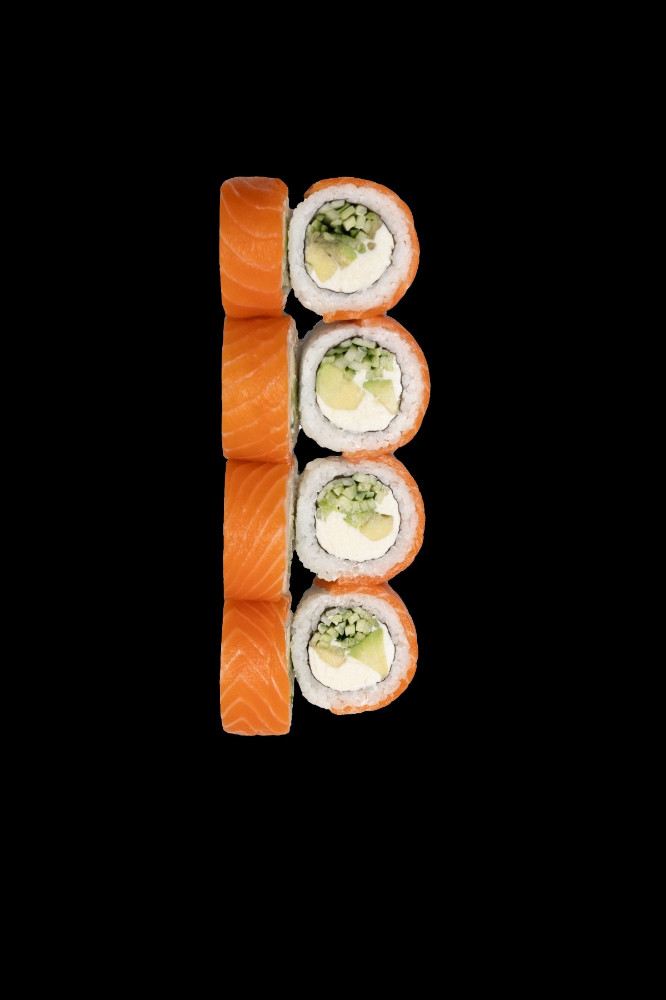 Сет-61. Філадельфія з лососем2. Філадельфія в кунжуті з лососем теріякі3. Філадельфія в ікрі з лососем4. Боніто з лососем5. Футомак з тунцем та ананасом6. Філадельфія в ікрі з сніжним крабом7. Чеддер груша8. Капа макі